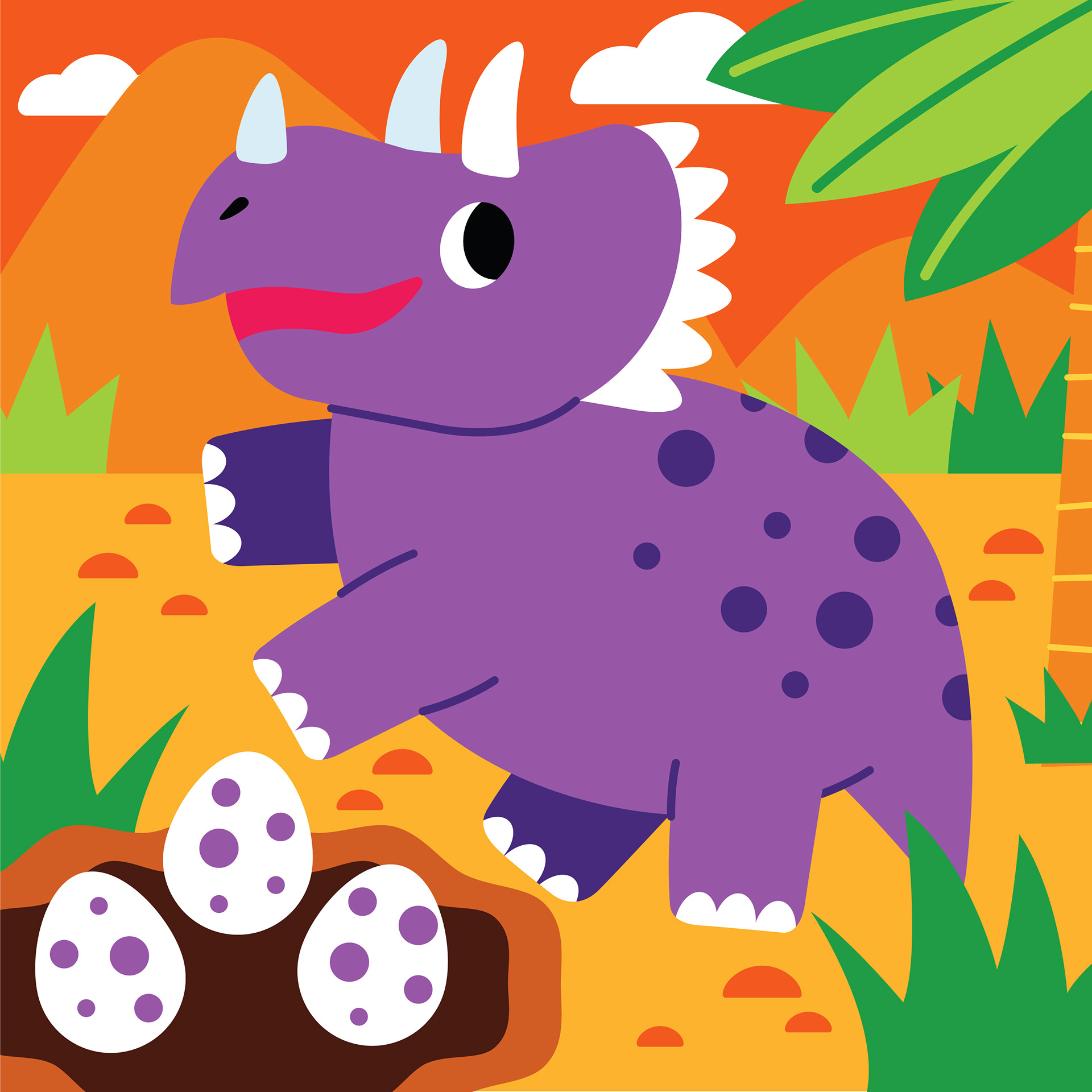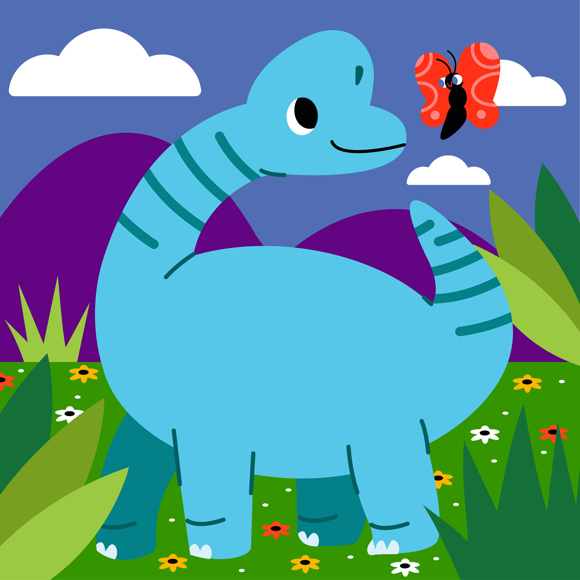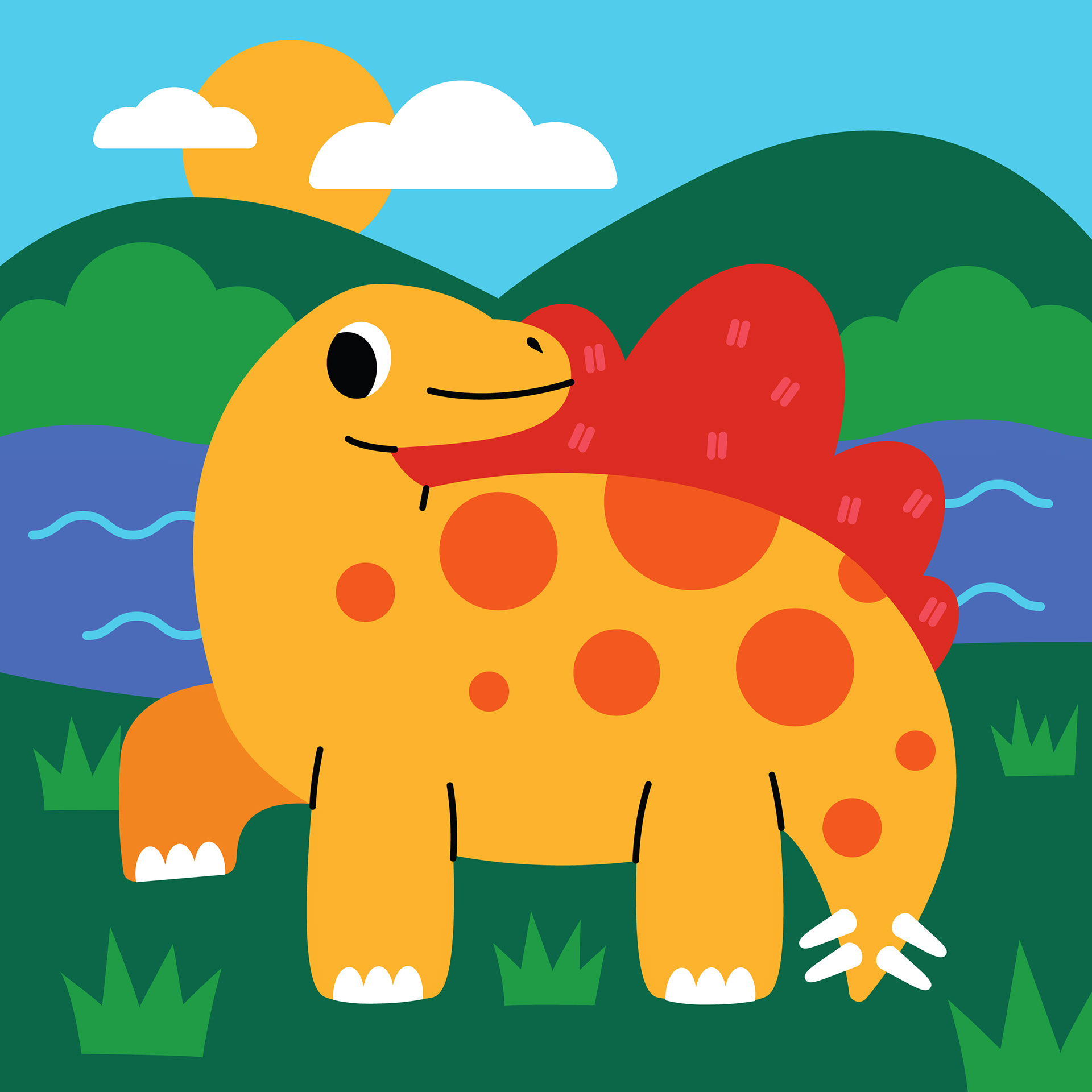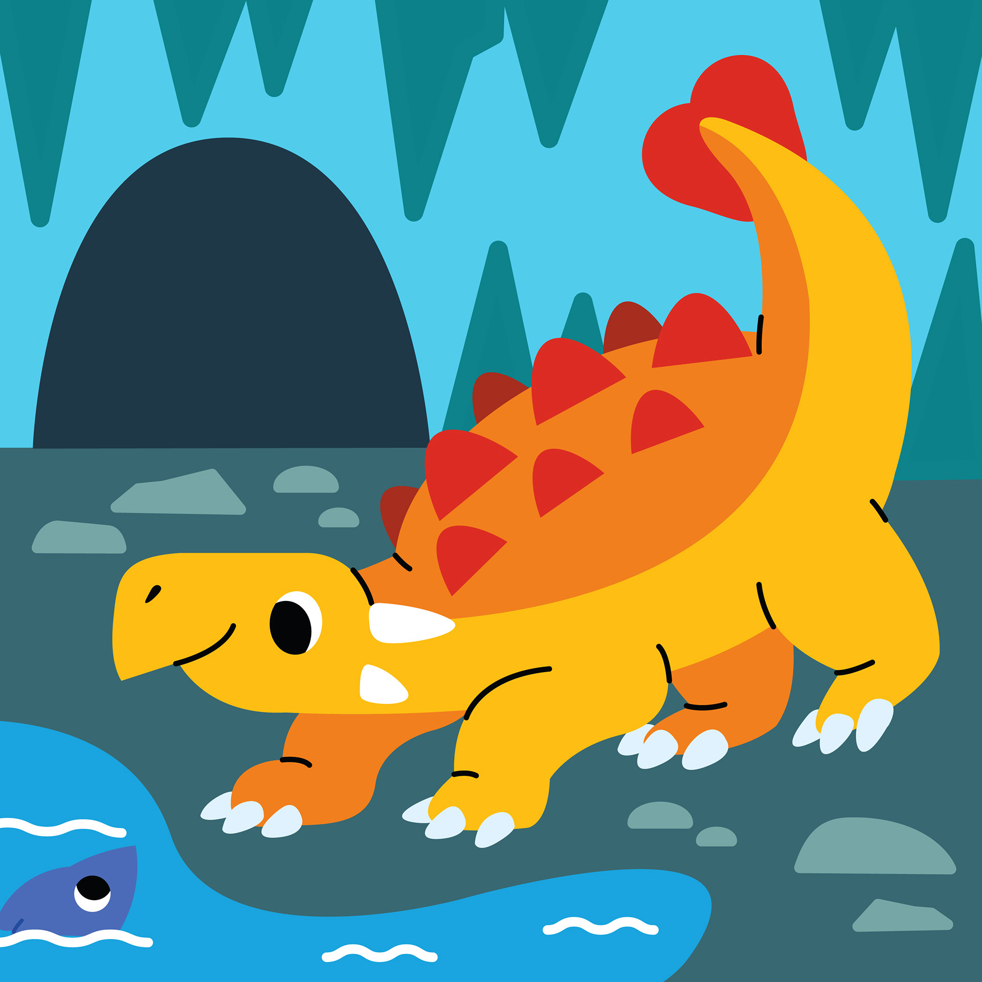 The cute lil' dinos in environments! I built out scenes for the dinosaurs I created for my board book mockup.